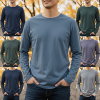 100% Cotton Men's Unisex Long Sleeve Neck T-Shirt OEM Logo Custom Blank Plain Silk Screen Printing Knitted 180 GSM Solid Pattern